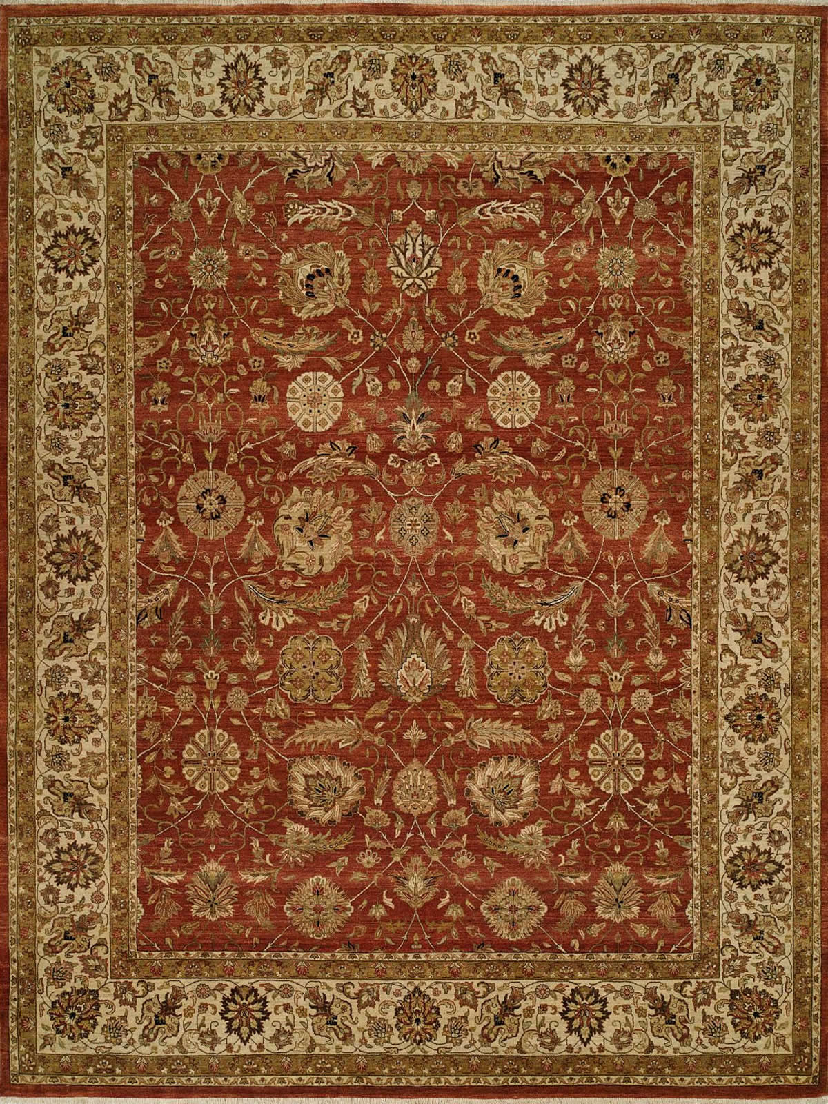 One of our finest weaves, these rugs are hand-knotted from premium hard-twist wool. The intricate traditional patterns are accomplished through a complex weaving process with one of our highest knot counts per square inch. These special rugs feature striations in color that are typically found only in the very finest antiques.