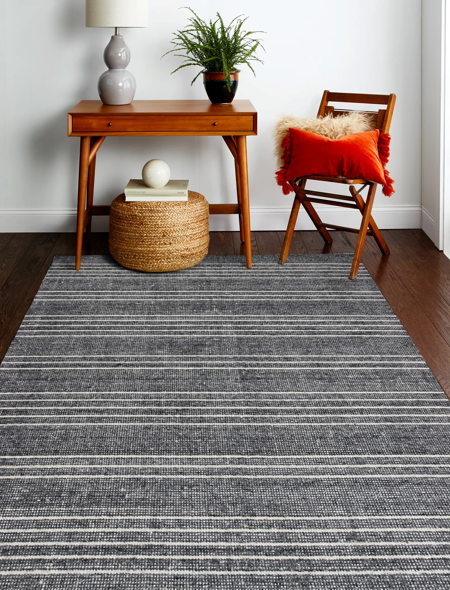 Add flexibility to your décor with these solid, all wool hand-loomed treasures. Subtle striations of harmonious, soothing colors, woven on a distressed low pile, gives your décor an added dimension. Gentle signs of wear are nuanced throughout for added texture.